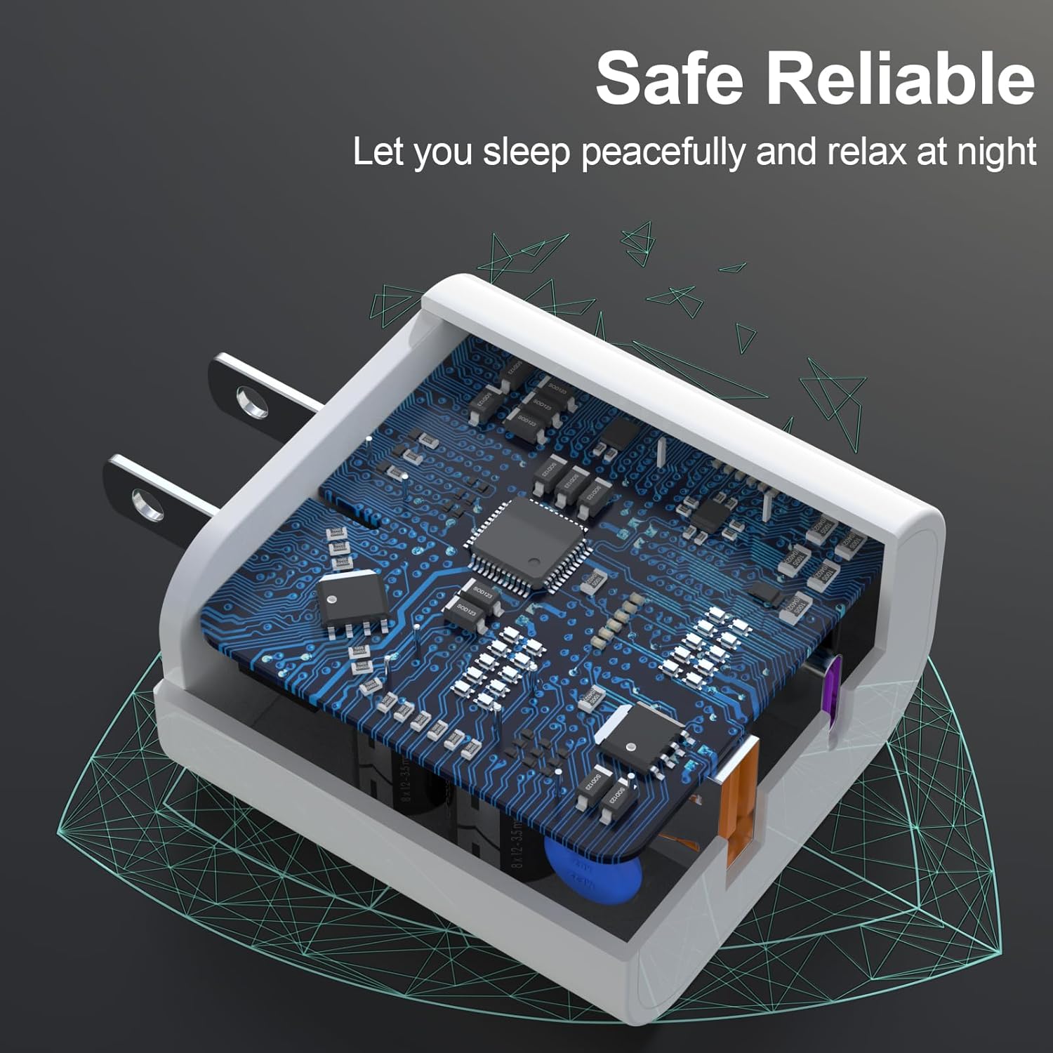 Equipped with advanced overheat and surge protection technology, you can rest easy knowing that your devices are safe while charging. Say goodbye to slow charging times and hello to quick and efficient power delivery with this 20W Dual Port Fast Charger Block 2-Pack.