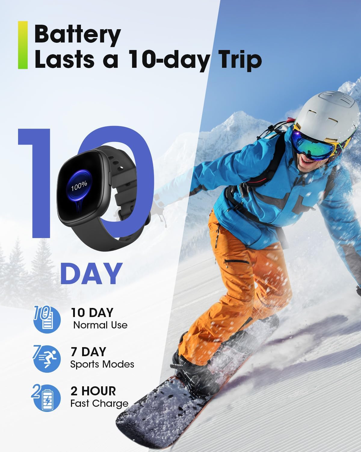 Stay connected like never before with Bluetooth call capabilities, allowing you to take calls directly from your wrist without missing a beat. Keep a constant check on your heart rate, blood oxygen levels (SpO2), and monitor your sleep patterns to ensure you’re always at your best. With 5ATM waterproof rating, you can take this smartwatch for a swim or wear it in the shower without any worries.